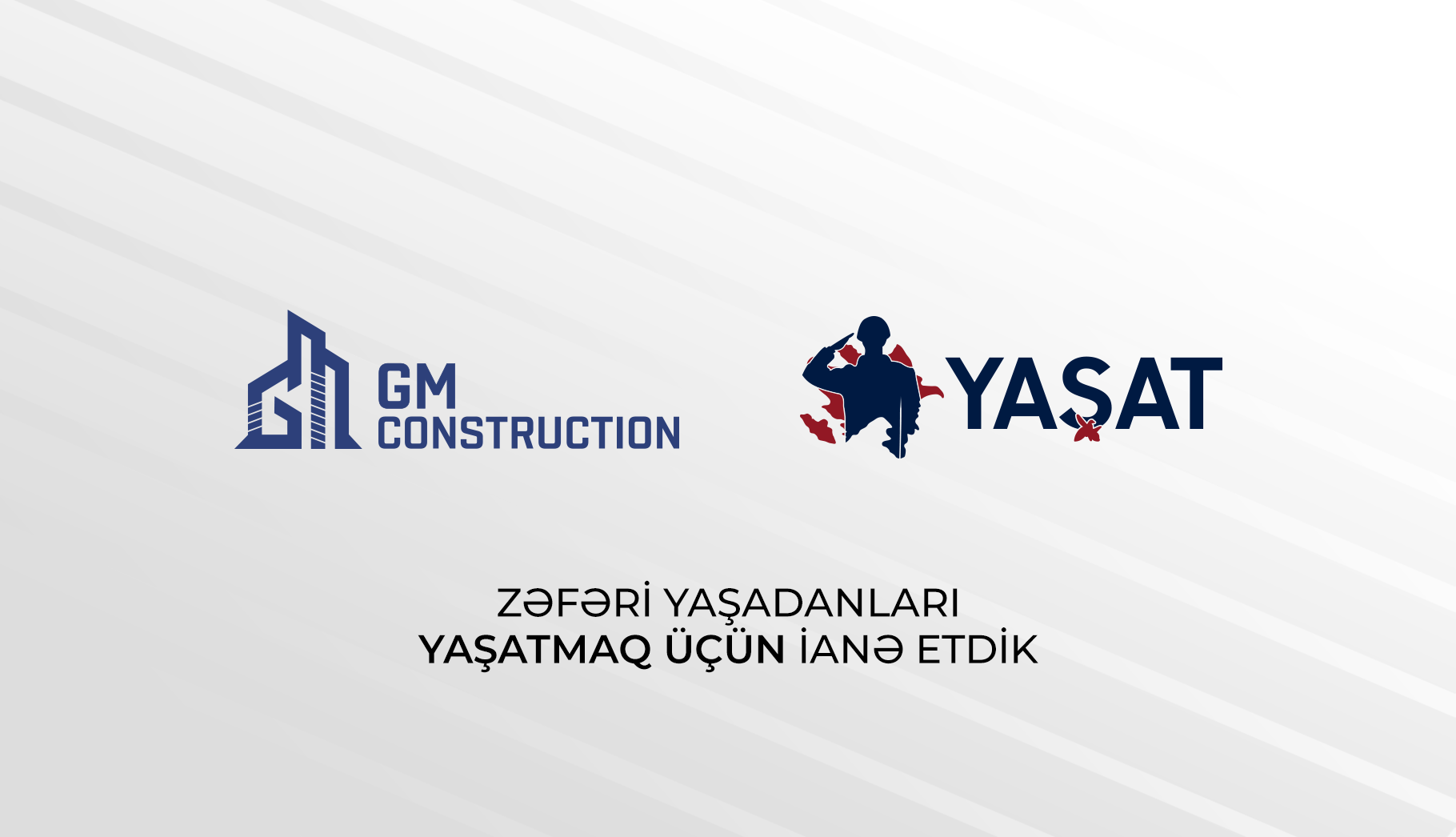 “GM Construction” ölkəmizin ərazi bütövlüyünün müdafiəsi zamanı yaralananların və şəhid olanların ailələrinin təminatına dəstək məqsədilə yaradılmış “YAŞAT” Fonduna 50 000 AZN ianə köçürüb.